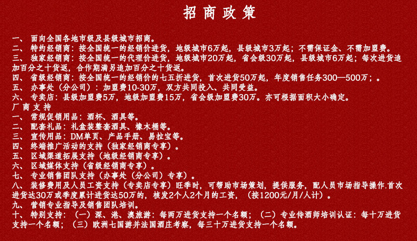 免責聲明:以上所展示的酒水信息由企業(yè)提供,內容的真實性、準確性和合法性由酒水企業(yè)自行負責。酒商網對此不承擔任何責任。
