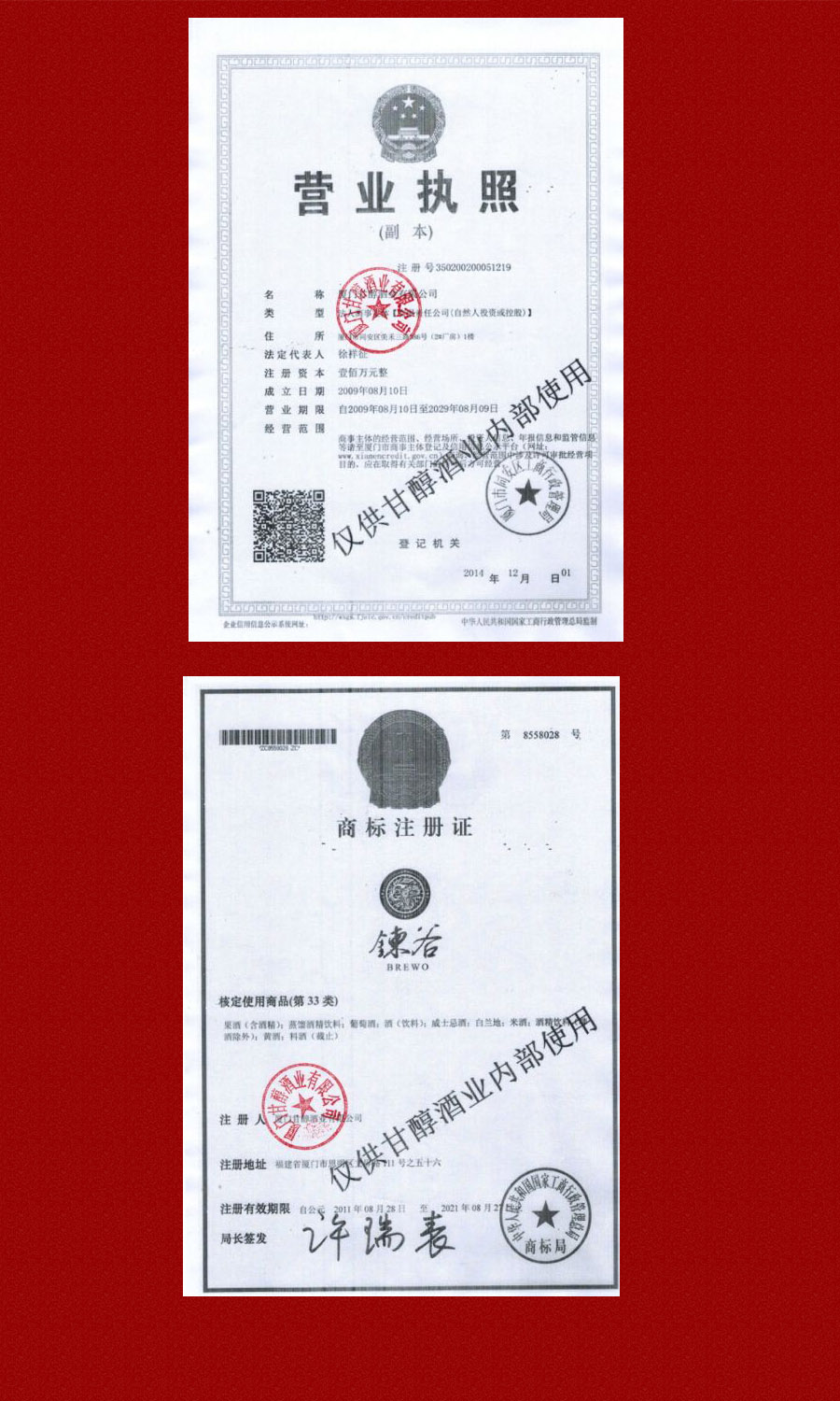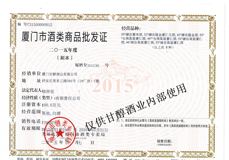 | 公司名稱: | 廈門甘醇酒業(yè)有限公司 | ||