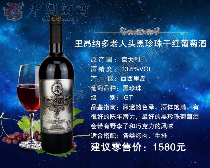 | 產(chǎn)品名稱 | 里昂納多老人頭黑珍珠干紅葡萄酒 | 產(chǎn)品類別 | 葡萄酒招商 |