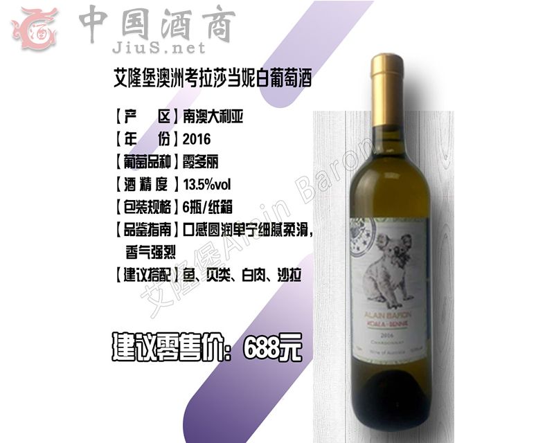 | 產(chǎn)品名稱 | 艾隆堡澳洲考拉莎當(dāng)妮干白葡萄酒 | 產(chǎn)品類別 | 葡萄酒招商 |