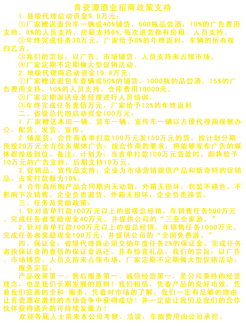 | 公司名稱: | 安徽青瓷潭酒業(yè)有限公司 | ||