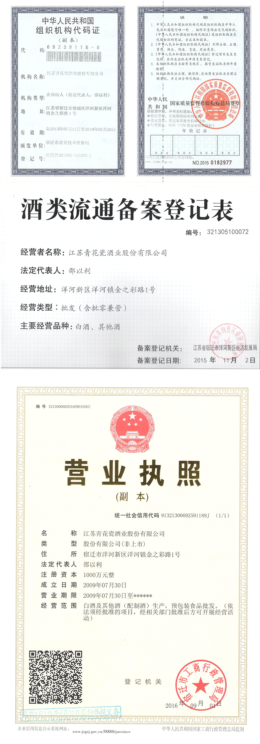 | 公司名稱: | 江蘇青花瓷酒業(yè)股份有限公司 | ||
